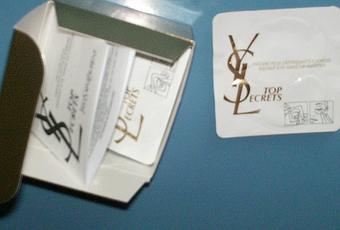 Alors ça s'appelle : patchs yeux défatiguant express et c'est dans la ligne Top Secrets (à mi-chemin entre le soin et le maquillage). Le truc de dingue, c'est la texture des patchs. On a l'habitude des patchs en papier qui se font la malle toutes les 10 secondes dès qu'on micro-plisse les yeux et bien là c'est tout le contraire. Ces choses sont faites en glycogel. Me demandez pas ce que c'est exactement, j'en sais rien. C'est du glycogel quoi. Pour vous donner, on dirait un peu du silicone en un tout petit peu plus rigide. Entre le plastique et le silicone je dirais, tout en étant plus proche du silicone. Les patchs se présentent par deux. Ils sont pré-imprégnés de produit, un truc qui gomme les signes de fatigues, les rides et tous les trucs pas sympas qu'on peut avoir sous l'oeil.