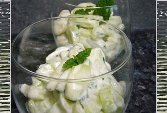Pelez le concombre puis coupez le en 4 dans la longueur. Égrainez le et coupez les quartiers en lamelles et placez les dans une passoire avec un peu de gros sel et laissez dégorgez pendant 15 minutes. Pendant ce temps, préparez la sauce dans un grand saladier. Fouettez le fromage blanc égoutté, la crème, le vinaigre et l’huile jusqu’à obtention du sauce légèrement mousseuse. Poivrez et entreposez au frais. Ciselez finement les herbes et les placer dans la sauce. Séchez le concombre et rajoutez le également, mélangez, goutez et rectifiez l’assaisonnement avant de versez dans des verres.