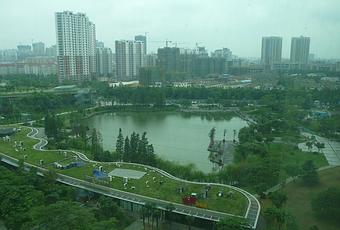 Je ne résiste pas à partager avec vous cette photo du parc en bas de chez moi (prise du 12ème étage de ma résidence). Nous sommes donc dans le nouveau quartier de Changzhou, le parc a été construit il y a moins de 10 ans, tout comme l’ensemble du quartier – et ce dernier n’a pas fini de se construire, comme le prouvent le champ d’immeubles en devenir derrière le parc…