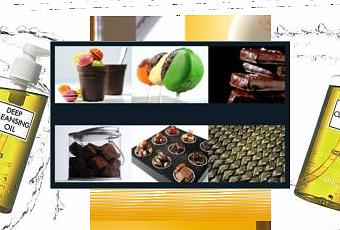 De nombreuses pâtisseries : Pipette vitaminée : Crumble au riz complet, gelée de violettes et crème au fromage blanc 0% de matières grasses parfumée à la violette. A arroser d’un coulis de cassis contenu dans une pipette.