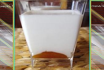 Chauffez dans une casserole le lait de coco avec le sucre, quand le lait bouillonne, stoppez la cuisson et ajouter la gélatine après l'avoir essorée pour la dissoudre dans le liquide chaud. Mélangez.