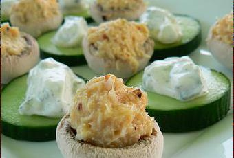 Ingrédients : 100 g de champignons de Paris - 1 boîte de chair de crabe en conserve - 3 cuillères à soupe de mayonnaise - Tabasco - ciboulette