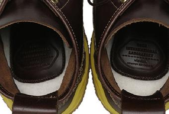 Visvim vient de présenter un aperçu d’un nouveau modèle issu de sa collection Fall/Winter 2009, la Decoy Duck Mid-Folk, ici dans un très beau cuir marron et avec un midsole jaune. Sortie prévue au Japon, exclusivement dans les boutiques F.I.L. du label, à partir du 11 septembre 2009.