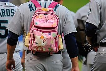 Shawn Kelley le #23 de l'équipe de Base ball Américaine " Seattle Mariners" ne fait pas tout comme ses collègues, puisque lui avant un match il se promène avec son sac à dos Hello kitty ! On se demande la motivation qui l'a mener à faire ça tout de même,surtout quand on voit les écritures au marqueur qu'on été faites sur ce sac ! Lol