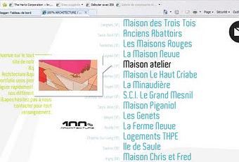 Hop voici notre nouveau petit (et efficace) site web, représentatif de notre activité et notre réactivité ! Jérôme Leclere de l'agence moresoup >>> ICI vient de nous offrir ce petit outil tout simple mais si efficace. Il manque pas mal de choses (c'est notre faute), car on lui a fourni ce qu'on avait et il s'est débrouillé avec ! Cela dit on va le compléter et je vous tiendrai informés de son évolution.En tout cas, merci Jérôme pour se sens synthétique. www.100architecture.com