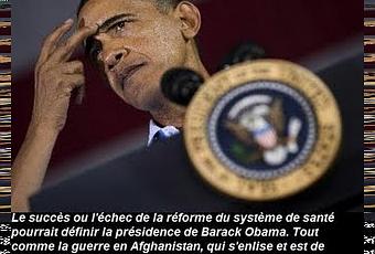 Bonne chance Monsieur Obama et comme le souligne Richard Hétu dans la Presse : « la santé n'est pas le seul dossier controversé que doit gérer Barack Obama en cette rentrée. Celui-ci devra notamment décider s'il enverra des renforts militaires en Afghanistan, où les Américains sont engagés dans un conflit de plus en plus meurtrier et de moins en moins populaire. Selon un sondage publié la semaine dernière, six Américains sur 10 sont désormais opposés à cette guerre.»« L'ironie veut que le président ait sans doute besoin de l'aide des républicains s'il veut continuer le combat contre les talibans en Afghanistan. Un tel scénario ne manquerait pas d'ajouter à la déception de ses partisans progressistes, qui le soupçonnent déjà d'être prêt à des compromis qu'ils jugent inacceptables en matière de santé.»