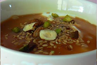 4. Torréfier les graines et oléagineux dans une poêle quelques instants. Les ajouter sur les coupes et réserver une bonne heure au réfrigérateur.