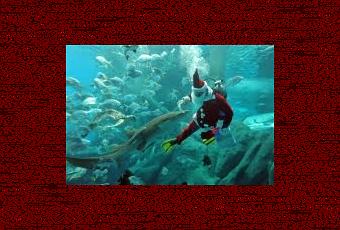 Pourquoi les requins n'auraient-ils pas droit, comme tout le monde, à des cadeaux de Noël ? Ce Père Noël n'a pas manqué de courage en nageant avec eux pour leur donner à manger.