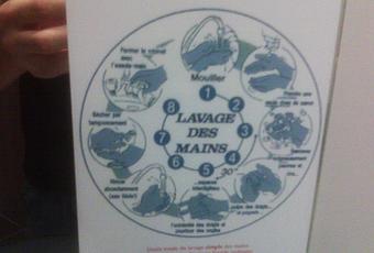 Parmi ces “évolutions”, des petits écriteaux dans les sanitaires des employés. Qu’est-ce que cela signifie? Approchons pour voir… Et oui, il s’agit bel et bien là d’un mode d’emploi qui explique comment se laver les mains ! Et oui, c’est possible ! Quelques fois que les gens se déchausseraient pour laver leurs quenottes, ce dictaciel montre les 10 étapes pour un lavage efficace. Non mais franchement, si à 20 ans et plus, on ne sais pas se laver les mains, je pense qu’on est trop con pour avoir un boulot ! Ou alors on est a l’initiative de ce genre de choses ! Mettre ce type de dessins dans des écoles primaires, d’accord. Mais disposer ça chez des adultes, c’est vraiment avoir un certain manque de considération pour ses employés et les prendre pour de gros crétins !