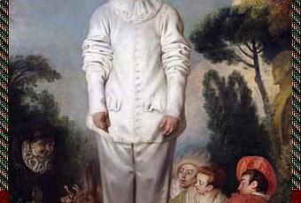Un autre tableau remarquable de Jean-Antoine Watteau est le Pierrot, dit autrefois "Gilles" qu'il peint à la fin de sa vie, vers 1718-1719. On ne sait pas grand chose sur la genèse de cette œuvre, est-ce une enseigne pour le café que tenait l'acteur Belloni, ou est-ce la représentation d'un spectacle de forains ?