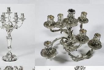 L'orfèvrerie est un art dans lequel les français excellent depuis longtemps. Les candélabres présentés ici sont du XIXe siècle et appartiennent à la galerie Olivia & Emmanuel. Je suis particulièrement sensible à ces objets qui reprennent des thèmes du XVIIIe siècle : rocaille et néoclassique. Ces porteurs de lumières, dans la ville des Lumières, sont de véritables merveilles.
