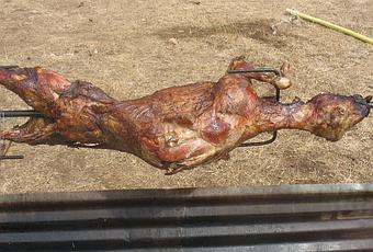 Le méchoui est un mouton ou un agneau entier rôti à la broche sur les braises d’un feu de bois. Le mot tient son origine d’un mot berbère qui signifie « grillé à la braise » .