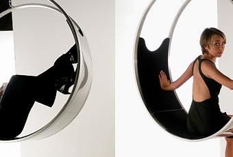 Loveuse B120 de chez Zedset se suspend au plafond. Ce fauteuil balançoire alliant confort et design, censé optimiser l’utilisation d’un ordinateur portable lorsque l’on est installé dedans.