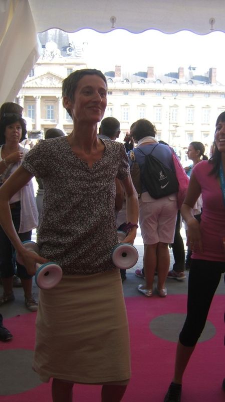 Et c'est là que je me fait avoir : car quand je retrouve Bruno et Hélène, ils sont dans le stand "Kellogs?" et une charmante petite dame vient vers moi et me dit : "Ah vous êtes Cathy : je vous attendais pour la démonstration!" Chouette, c'était le petit kdo de ma frangine :) Mais je ne me suis pas désistée : après tout, le ridicule ne tue pas et il est bon que tout le monde se rende compte de mon manque notoire de coordination : l'exercice était simple au demeurant : jambe gauche devant - jambe droite devant - jambe gauche arrière - jambe droite arrière : j'ai résisté cinq longues minutes : où j'étais hyper-méga-concentrée sur l'écran et pis tout pis tout, mais c'était un peu la-men-ta-ble. J'ai bien fait rire la petite dame qui, grâce à moi (un peu comme dans Kung Fu Panda), a découvert le niveau zéro de la coordination :)