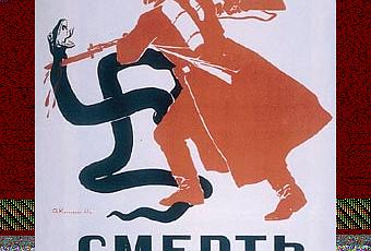 Affiche de propagande soviétique. Soldat de l'armée rouge terrassant la "vipère fasciste".