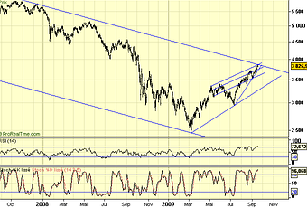 En raison du salon du trading où je compte bien rencontrer un certain nombre d'entre vous, cette note sera courte d'autant plus que l'essentiel a été dit et peut être vu ces derniers jours. On retiendra toutefois que le point de 3840/3850 n'a pas été calculé au hasard comme vous vous en doutez mais qu'il correspond à un point de retracement des plus important entre le point bas de 2003 et le point haut de 2007. Je vous laisse le soin de le vérifier. Cela ne veut pas dire qu'il n'est pas possible de le déborder mais tout simplement que cela constitue un point de référence et un obstacle de taille. Quelques signaux de vente sont donc apparus en cours de journée hier et devraient persister aujourd'hui pour constituer ce qu'il est convenu d'appeler une consolidation. Nous reprendrons à peu de choses près les mêmes points techniques soit : résistance à 3840/3850 des extensions dues à la volatilité du dernier jour des contrats en direction de 3860/3875 pour le haut. Vers le bas : point pivot à 3760 et décrochage sous 3720 en direction de 3620/3580. Toutefois, la zone 3780/3760 devrait tenir et en l'absence de statistiques importantes la journée pourrait être calme mais qui sait ?