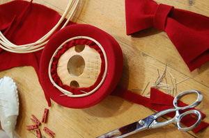 Le feutre apprêté sèche et se tend sur sa forme en bois....