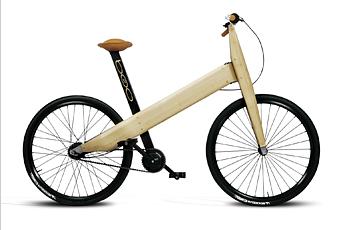 Ce vélo haut de gamme utilise un maximum de matières naturelles : jantes en bois, selle en cuir, poignées en liège et fil de lin.