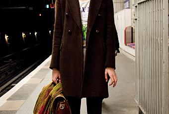 J'ai croisé Jim sur les quais du métro parisien en voyage depuis Londres. Son look est excellent avec un mix entre des pièces piquées à son père (le sac) et du créateur avec DSquared ou les chaussures de la marque anglaise au nom français Pied a Terre.