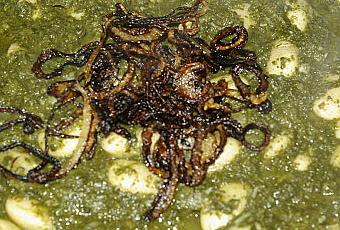 et verser l'huile dans le faitout avec les épinards et les haricots. Servir dans un plat creux, parsemer sur le dessus l'oignon grillé. A déguster avec un filet de citron selon le goût.