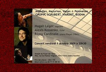 piano Pleyel 1843 de la collection Olivier Fadini), ce concert permettra de se plonger dans l'atmosphère des grands salons parisiens du XIXème siècle.