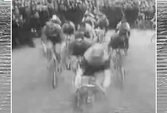 Montmartre : - VG du départ des concurrents - Le peloton étiré dans les rues - Robert OUBRON est en tête dans la descente d'un escalier - Nombreux plans de Robert OUBRON, nettement détaché, gagnant la course - VG de OUBRON, porté en triomphe, un bouquet à la main - NOTA : rares plans de spectateurs et peu intéressants.