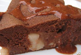 Les blancs sont battus en neige fermes, les incorporer délicatement à la préparation chocolatée puis verser le tout dans un moule en silicone (Tupperware ou autre marque). Enfoncer les dés de poire à l'intérieur de la pâte au chocolat.
