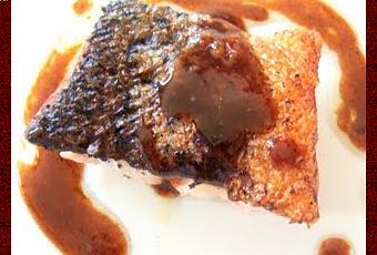 Mais revenons à nos fourneaux, un pavé de saumon à la peau craquante accompagné d'une sauce au vin de Corbières