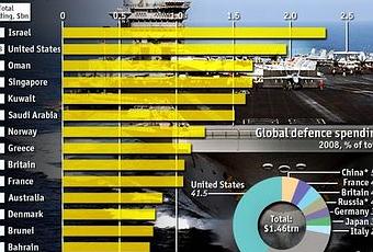 Selon une étude du SIPRI (Stockholm International Peace Research Institute), les dépenses militaires (et non les investissements s'il vous plait) ont augmenté de 4% dans le monde pour atteindre le chiffre inimaginable de 1,46 trillions de dollars.