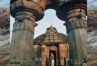Bien que moins fréquenté, le temple de Mukteshwara à Bubhaneshwar est un joyau de l'architecture sacrée en Orissa. La photo montre au premier plan le torana (portail) harmonieusement décoré de sculptures. L'ensemble du temple présente d'ailleurs des sculptures et une architecture tout en finesse.