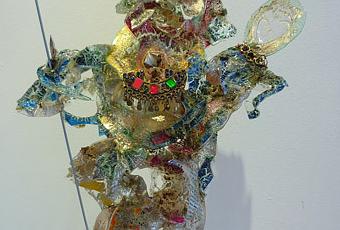 Chirurgien dentiste de métier, PYA manipule les petits objets avec dextérité, et comme il le fait pour redonner vie à un sourire, il redonne vie à de petits bijoux, des pieces informatiques,…, il les incorpore dans des structures en résine qu’il créée , façonnant des personnages mystérieux issus de son imaginaire ou référants de sa culture.