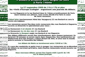 Dimanche 27 septembre, "Les Amis d'Europe Ecologie" organisent une journée de débats de 11h à 17h rue Daguerre et rue Boulard dans le 14e arrondissement de Paris.