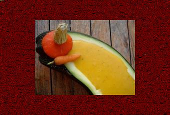 Cette soupe a fait sensation, certes pour son goût, mais avant tout pour cette présentation… Pour tout avouer, ma courgette pesait 3,500 kg et c’est bien celle offerte par Santiago « 10″, oubliée dans son fameux potager…