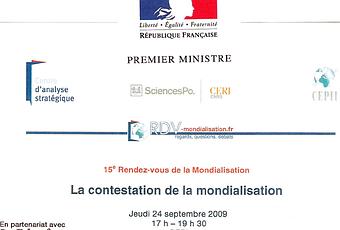 Tous les deux mois a lieu au CERI un Rendez-vous de la mondialisation. Celui de jeudi dernier portait sur ‘La contestation de la mondialisation’. Alfredo Valladao (ScPo), Zaki Laïdi (ScPo), Eddy Fougier (IRIS), Dominique Plihon (univ. Paris-Nord) étaient animés par Eric Le Boucher, docteur en économie de Paris-Dauphine et directeur de la rédaction d’Enjeux-Les Échos. Hauts fonctionnaires, syndicalistes, partisans, journalistes et étudiants étaient conviés dans une salle basse de plafond, mal ventilée, d’aspect soviétique mais située idéalement entre Science Po et l’ENA.