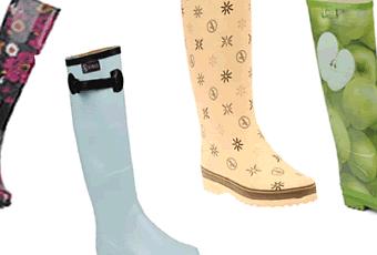 Retrouvez toutes ces bottes de caoutchouc pour sauter dans les flaques d’eau chez Sarenza. De gauche à droite, Kenzo à talon (175 euros, ouch!), et Aigle pour les trois autres (de 40 à 80 euros). Certains modèles sont déjà presque en rupture de stock. Il faut dire que des bottes de ce style, j’en ai vu cet été par temps de canicule, un short en jeans et un t-shirt venant souvent compléter la tenue decontractée ”in” par excellence.