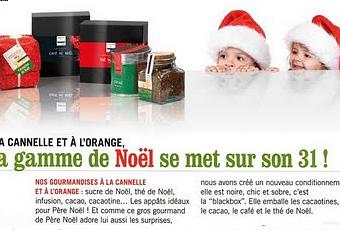 Noël arrive à grands pas...Nous sommes presque début octobre... Alors pour un colis gourmand de qualité à un prix abordable : Je cite "Quai Sud" mélangeurs de saveurs : Ils sont spécialisés dans l'épicerie fine. Tendance & CO distribue leur produits en proposant un coffret chic et raffiné... La gamme Quai SUd est originale, tendance et de qualité : Le packaging est vraiment réussi "Spécial noël" : Thé de noël, Sucre de noël, Cacao de noël...il y a même du café de noël... Pour les comités et les particuliers... Noëllement votre, L'équipe du père noël