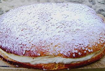 Il s’agit d’un dessert composé d’une brioche ronde et assez
