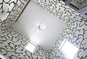 S’inspirant de la végétation qui colonise les murs bordant la rivière Shibuya toute proche, l’équipe de Nendo a ainsi recouvert les murs intérieurs de cette maison de Tokyo d’un motif organique, relecture végétale du classique papier peint.