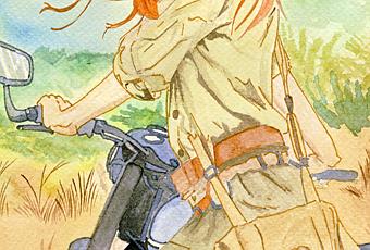 Je connaissais déjà lorsqu’on l’appliquait une fois l’oeuvre fini, mais pas au début. Afin de la faire ressortir j’ai fait un léger contour en marron pour la jeune femme et en gris pour la moto.