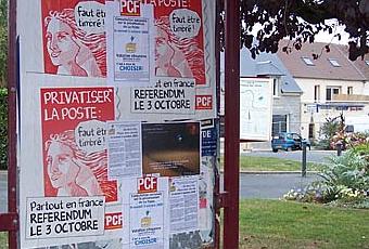 Alors que France Télécom fait parler d'elle à cause de ses conditions de travail, certaines villes du Calvados (Caen, Mondeville, Giberville, Ifs, Colombelles, Fleury-sur-Orne, Louvigny, Dives-sur-Mer) ont appelé à se prononcer pour ou contre la privatisation de la poste. C'est devant le bureau de poste, place Jean Jaurès que s'est déroulé le vote à Fleury-sur-Orne. Toute la matinée, les passants ont pu déposer leur choix dans une urne. Cette action n'a bien entendu aucune valeur référendaire mais la participation montrera si les français sont attachés à leur service postal public.