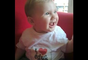 Margaux, 6 mois, a aussi son badge sur son T.Shirt…