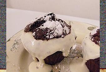 Pour cette première j'ai choisi de faire des cakes au chocolat noir avec une crème au chocolat blanc qui dégouline dessous, hihi j'adore! et je peux vous dire que nous nous sommes régalés!!