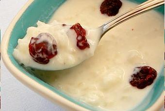 Recette: 1/2 verre de riz rond - 4 vol de lait de vache ou de soja - 1/2 cuil à café d'agar-agar - édulcorant naturel Sweet'line - baies de Goji ou cranberries ou autres fruits