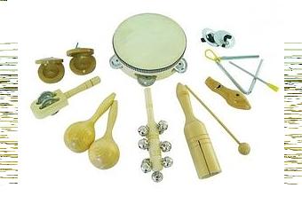 Un ensemble d'instruments musicales 12 pièces en bois avec entre autres un tambourin en peau que le chérubin ne quitte plus (le mieux étant quand même de taper dessus très fort dans la même pièce que sa sœur), un sifflet d'oiseau (idéal pour déranger la même sœur en plein biberon), un triangle, des maracas....Je ne te raconte pas sa tête ravie quand il a ouvert le paquet, je n'avais même eu pas le droit d'y toucher !