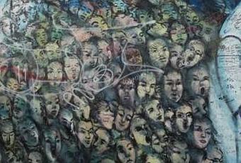 Le Mur à peine ouvert, il fut tagué, graffité, peint, décoré, empli d’humour et de colères. Puis il fut sali, tagué de virgules parfois très moches. L’été dernier, les artistes de 1989 furent invités à restaurer l’œuvre. Je n’ai pas vu ce mur remis à neuf, j’ai encore en mémoire des superpositions hasardeuses, celles-là même que je vous propose de regarder ici :