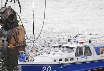 Royal De Luxe est une compagnie de théâtre de rue nantaise célèbre pour ses marionnettes géantes. Ici, le scaphandrier sort de l'eau à la recherche de sa nièce. C'est hiératique et impressionnant.