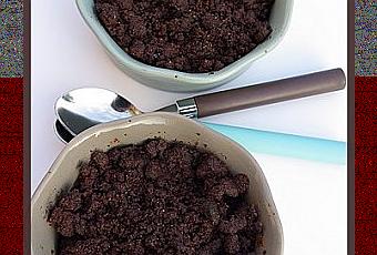 alors quand je vois un superbe crumble si alléchant et si gourmand chez B comme Bon , je file le tester ! et encore plus vite quand il y a du choc ! je pousse même la gourmandise de rajouter des pépites de chocolat !