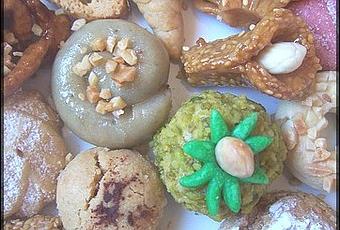 Pour l'occasion, j'avais concocté quelques petites douceurs orientales ( voir descriptif ci-dessous ); une brioche saoudienne saupoudrée de halwa, dragés et d'amandes frites; des Rghaeyfs aux amandes ( recette ici - clic ! - ); un lait velouté aux carottes et du laban à la banane.