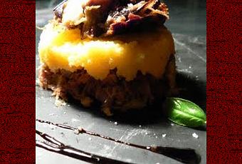 Une petite recette rigolote... ou comment détourner un bon vieux classique !Ingrédients pour 4 personnes : 1 boîte de confit de canard (4 ou 5 cuisses), 160g de polenta précuite (Tipiak par exemple), 15cl de crème liquide, 0,6l de lait, 15g de beurre, 1 petite gousse d'ail, fromage râpé de votre choix.Sortez les cuisses de canard de la graisse, enlevez la peau, les os, le gras et passez-les sous l'eau chaude pour enlever le surplus de graisse. Emiettez grossièrement la viande et faites-la revenir dans une poêle avec l'ail pressé pendant quelques minutes. Poivrez et réservez. Préchauffez le grill du four.Dans une casserole, faites chauffer le lait et la crème liquide jusqu'à ébullition. Versez la polenta en pluie en remuant sans cesse avec le fouet. Laissez cuire jusqu'à ce que la polenta se détache des parois. Ajoutez alors le beurre, salez et poivrez. Dans un plat à gratin, disposez la viande, recouvrez avec la polenta et terminez par le fromage râpé. Passez sous le grill du four jusqu'à ce que le fromage dore. Servez avec une salade verte, une poêlée de champignons, d'aubergines ou de légumes de votre choix.Cliquez ici et retrouvez cette recette en version imprimable !