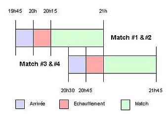 Pour le prochain rendez-vous (19/10), je vous propose de rassembler au moins 4 femmes (8 max) et 4 hommes (8 max) pour réaliser les 4 matchs de la soirée.